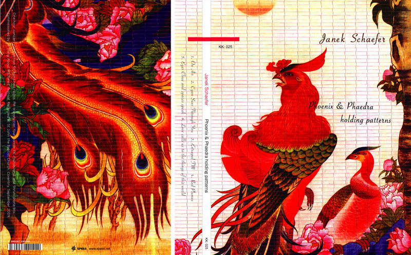 This milestone in the career of Janek Schaefer, the British sound artist and musician who has already racked up numerous weighty honours and accolades, also marks the return of the classy Spekk label of Japan after a year of silence. Phoenix & Phaedra holding patterns is, it seems to me, an essay on that most topical of social and cultural obsessions, communication, the medium as opposed to the message. It is in fact a live recording – it couldn´t be otherwise – wherein a concert hall full of guests have each been given a (different model) portable radio as Schaefer, out of sight, broadcasts over a short-range FM transmitter. While they listen to his slowly unwinding, immersive composition of found sounds, electronic ambience and Shruti Box drones, we listen to them listening to it. Schaefer seems also to have recorded himself moving about the concert hall, perhaps scrambling up stairs and over catwalks to different vantage points from which to broadcast, as evident in the interlude ”Eyrie of the Phoenix”. As tantalizing an idea it is, it would hardly be worth more than a note if the music itself was not of such restrained, majestic intensity and high quality – particularly the resounding ”Red Plumes”, almost a brief history of how sound has conveyed messages, suggesting a progression from the ancient custom of ringing church bells to digital microwaves. The respectfully restive seating of the audience at the beginning of the album and the very acoustics of the space captured by Schafer breed an atmosphere of sacrality, as does the recitation of a Richard Wilbur poem, perhaps another hint of the care and regard with which we should treat the art of communication in an age when it has become our primary form of life experience. ”The morning air is all awash in angels,” indeed it is. |