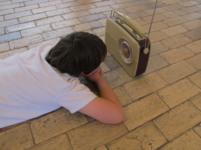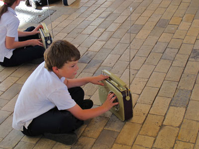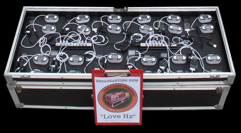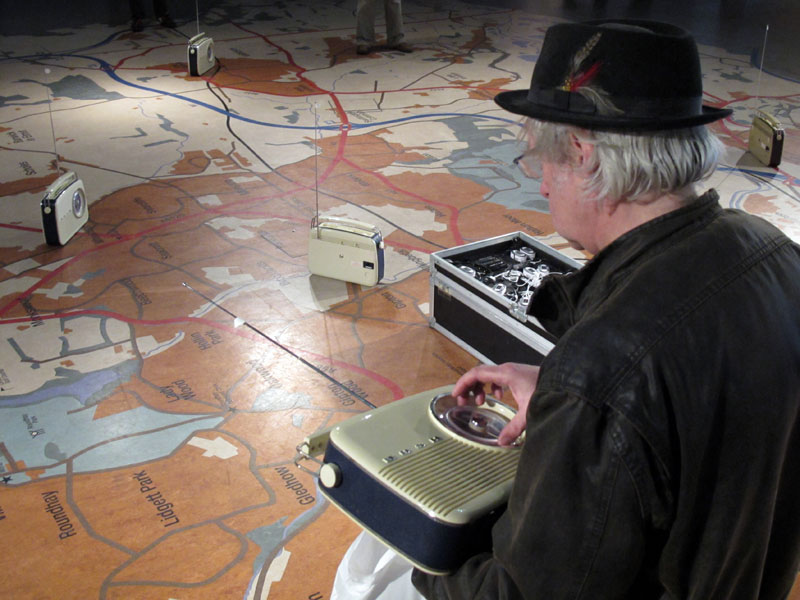 ......120 years ago the Radio was patented by Edison. The transmitter enabled one voice to broadcast to many remote people, and the limited range defined each local community. In the Local Radio Orchestra this idea is combined with the engagement of the audience, who create a shuffling and shifting orchestra using the 12 classic portable radios, as they move them around and adjust the settings within range of the transmitter trunk. Inside the trunk are 24 x Digital short range FM transmitters, and each is tuned to a different frequency between 88-108 FM. The pirate station hijacks and saturates the entire radio spectrum within a short radius. This then enables you to tune out and then tune in to the 12 separate parts of the composition to form infinite new arrangements, while also moving the radios around the space and adjusting the volumes as desired. A community radio station!... A radio community ating with it's own accord. |